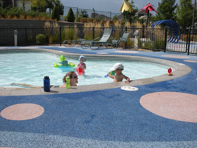 Splashing in the kiddie pool. Amazingly, we had it all to ourselves today. (