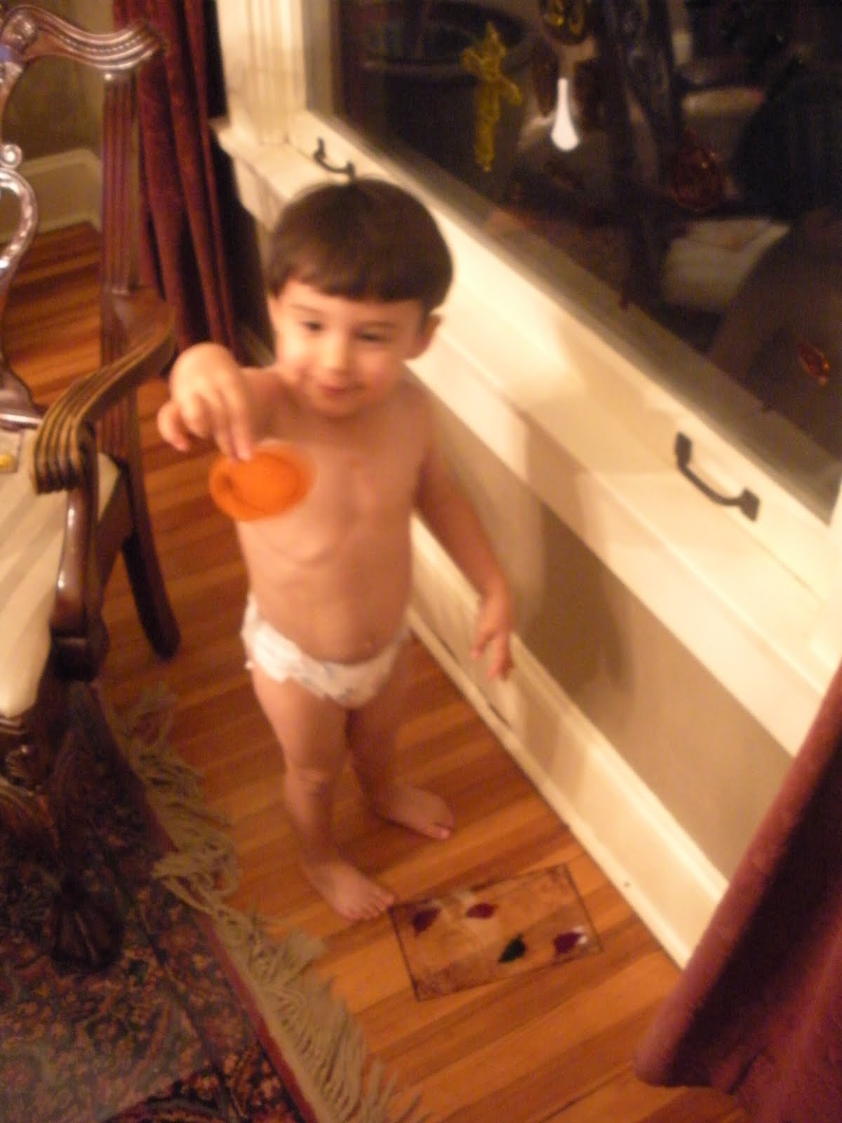 Blanden and Ellis had a pajama party at school on Friday. Their daycare center is affiliated with a conservative church so they don't celebrate Halloween, but they had a fun dress-up day and fall harvest festival instead. Blanden had been talking about it throughout the week and thought it was very silly. They had snacks, played games, and put their handprints on pumpkins in paint.